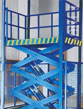 目前的固定式液壓升降機主要是有建筑物或輕型鋼結(jié)構(gòu)所圍成的封閉式或網(wǎng)狀式井道并用液壓驅(qū)動油缸頂升平臺。其主要組成部分為: