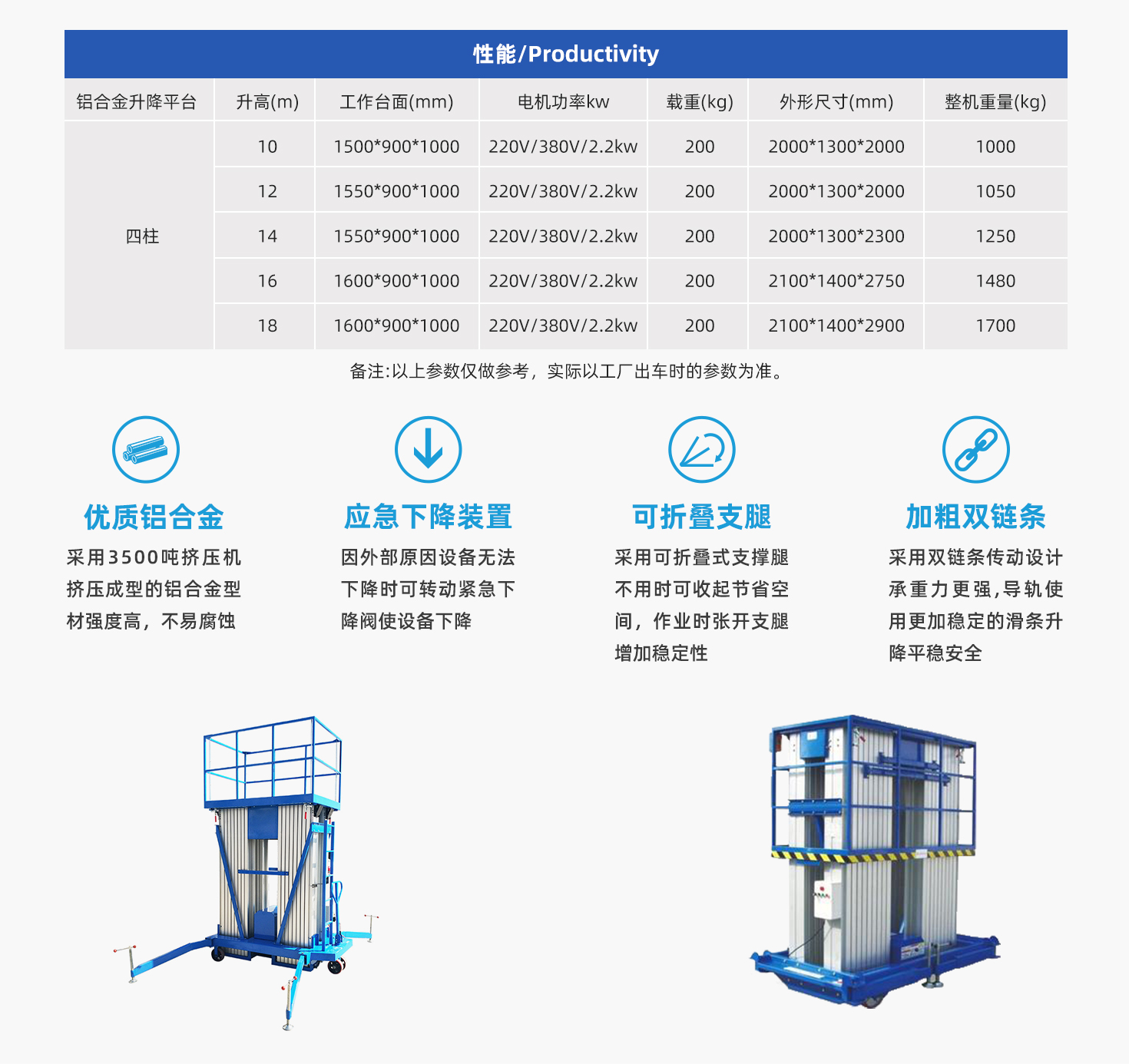采用高強(qiáng)度優(yōu)質(zhì)鋁合金材料,具有造型美觀、體積小、重量輕、升降平穩(wěn)、安全可靠等優(yōu)點(diǎn)。穩(wěn)定性極好,運(yùn)轉(zhuǎn)靈活,推行方便。它輕盈的外觀,能在極小的空間內(nèi)發(fā)揮最高的舉升能力。